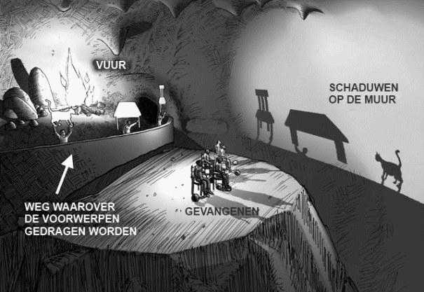 Als een gevangene vrij zou komen en zou zien dat ‘zijn werkelijkheid’ slechts een projectie was, zou deze gevangene gek worden. Mocht deze gevangene ook nog eens uit de grot ontsnappen en de ‘echte wereld’ zien, zou dat al helemaal niet te bevatten zijn. Als dit op de een of andere manier wél het geval zou zijn, en de gevangene terug zou keren om de rest te bevrijden en hen de waarheid te vertellen, zou hij of zij niet begrepen worden. Sterker nog: de andere gevangenen zouden hem of haar zelfs als gevaar kunnen zien of zelfs voor gek kunnen verklaren. Dit omdat hun ‘taal’ alleen maar naar de reflectie van de werkelijkheid verwijst.
